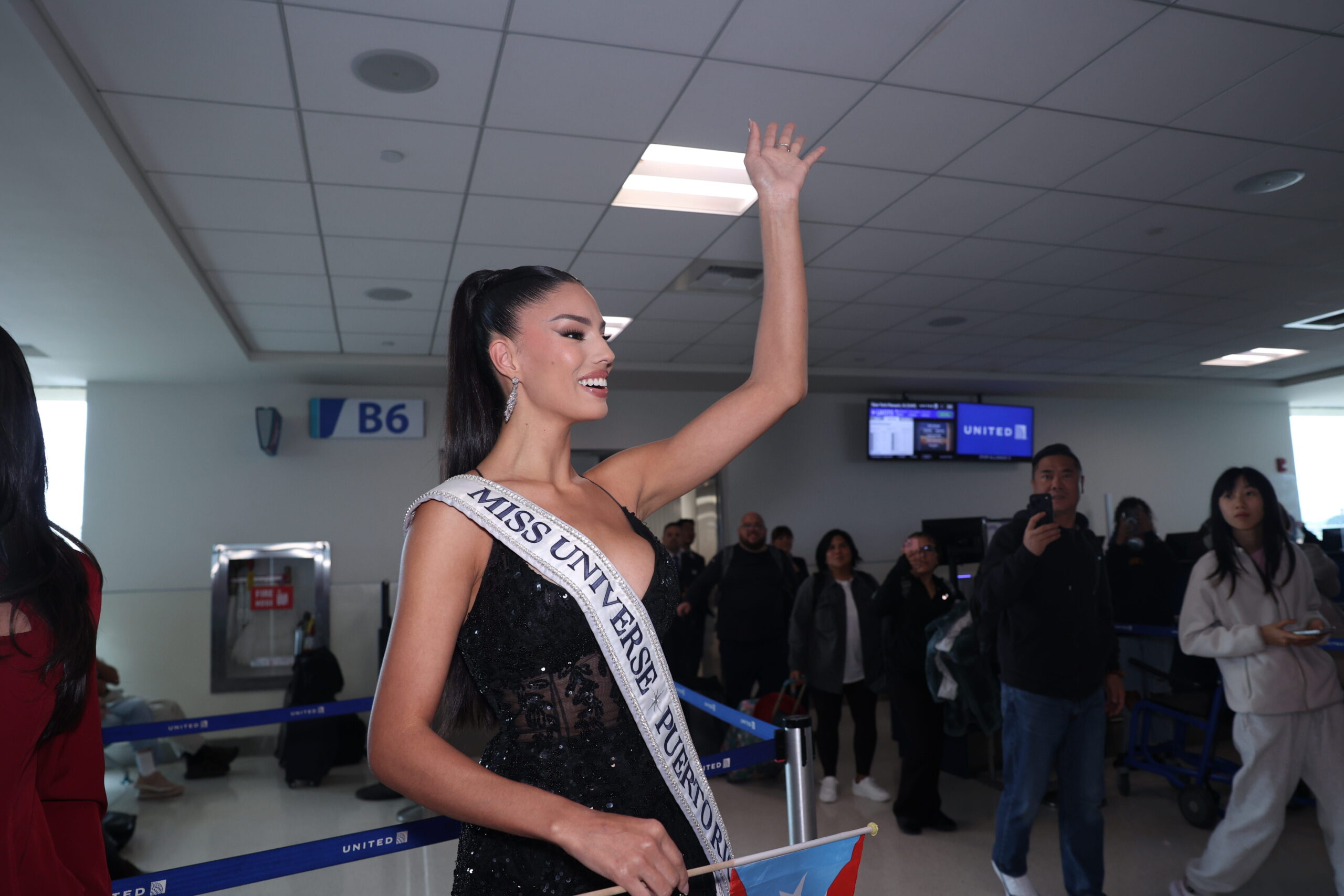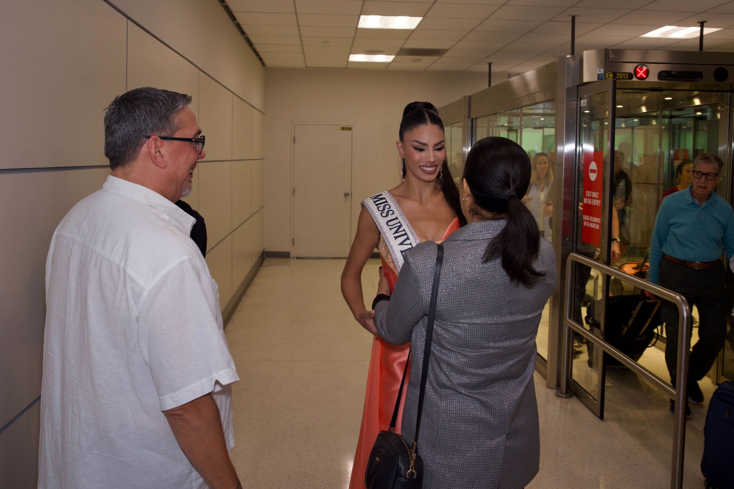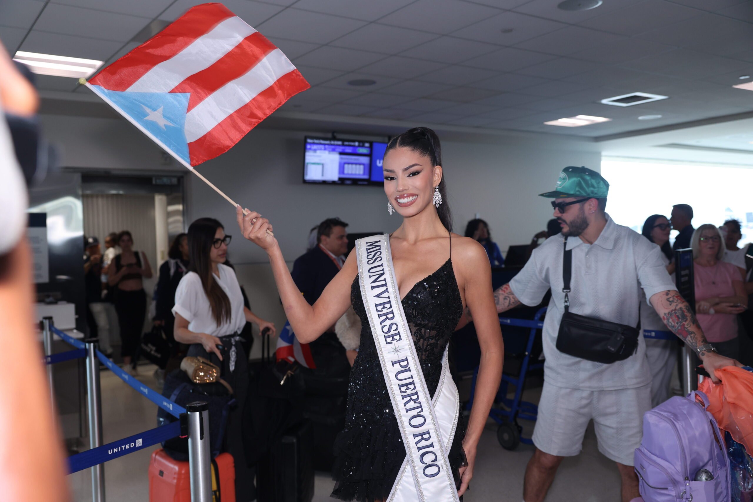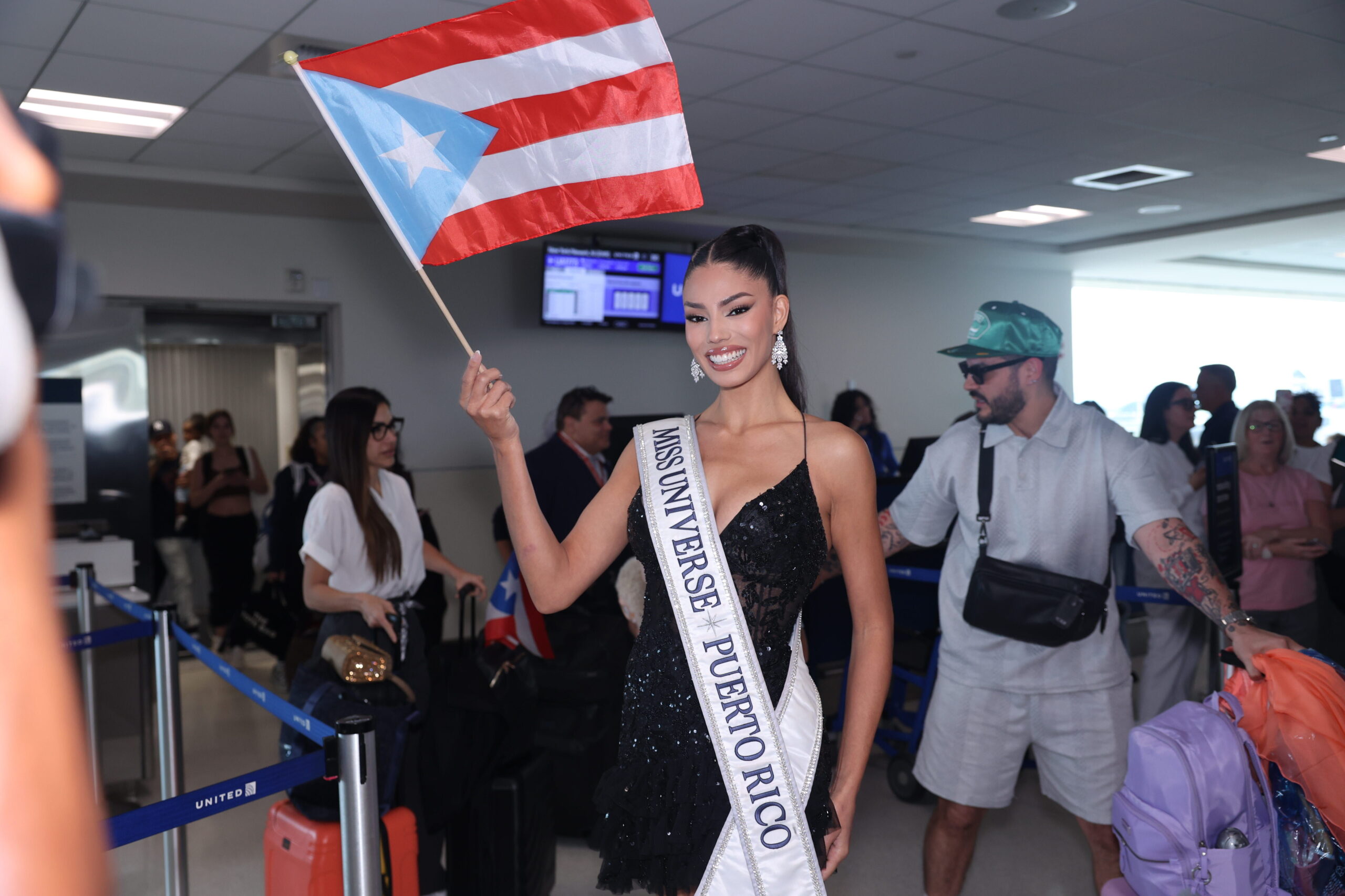 Nuestra reina, quien puso el nombre de Puerto Rico en alto con una destacada participación, llegó acompañada por parte de su familia y junto a la directora nacional de Miss Universe Puerto Rico, Yizette Cífredo.