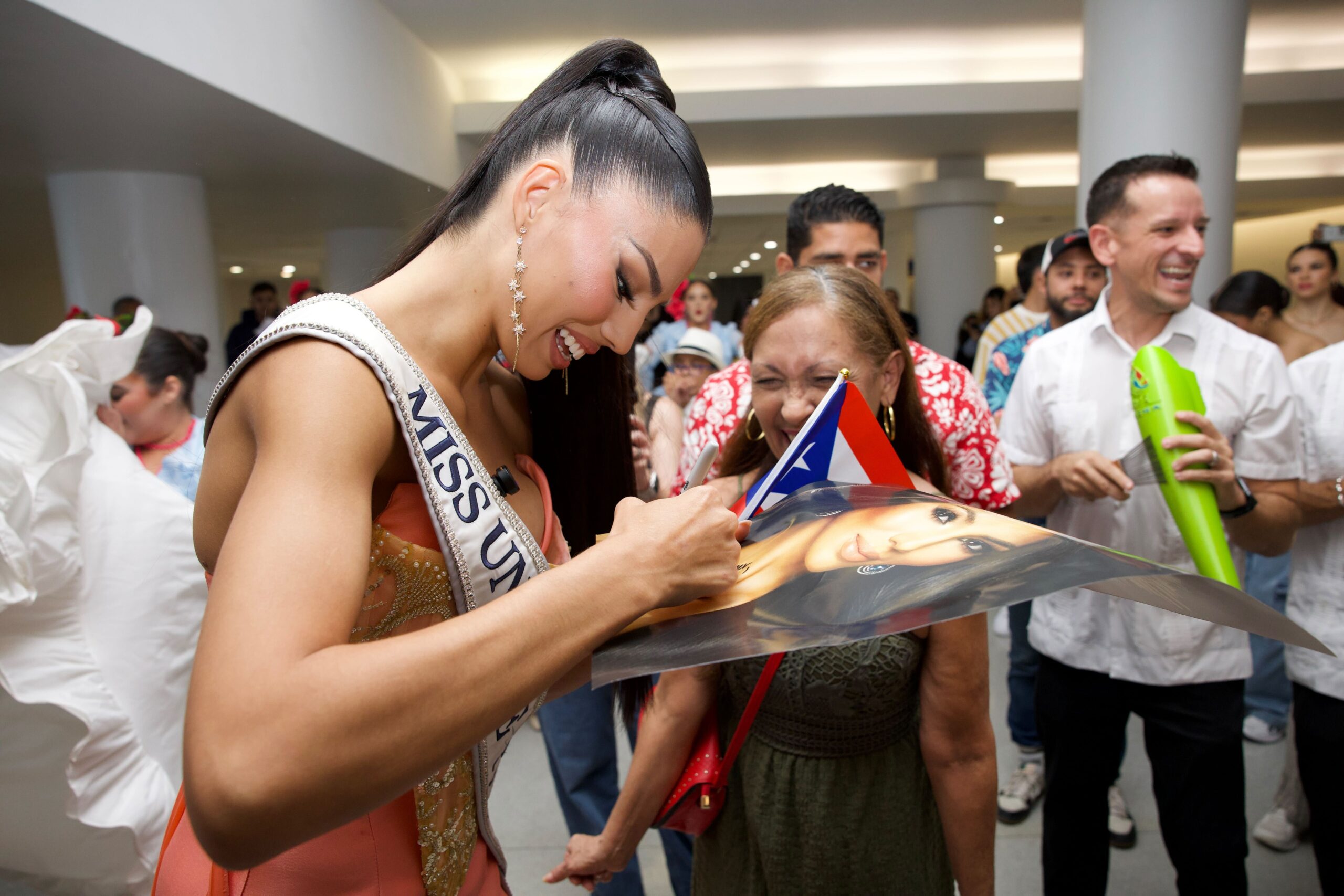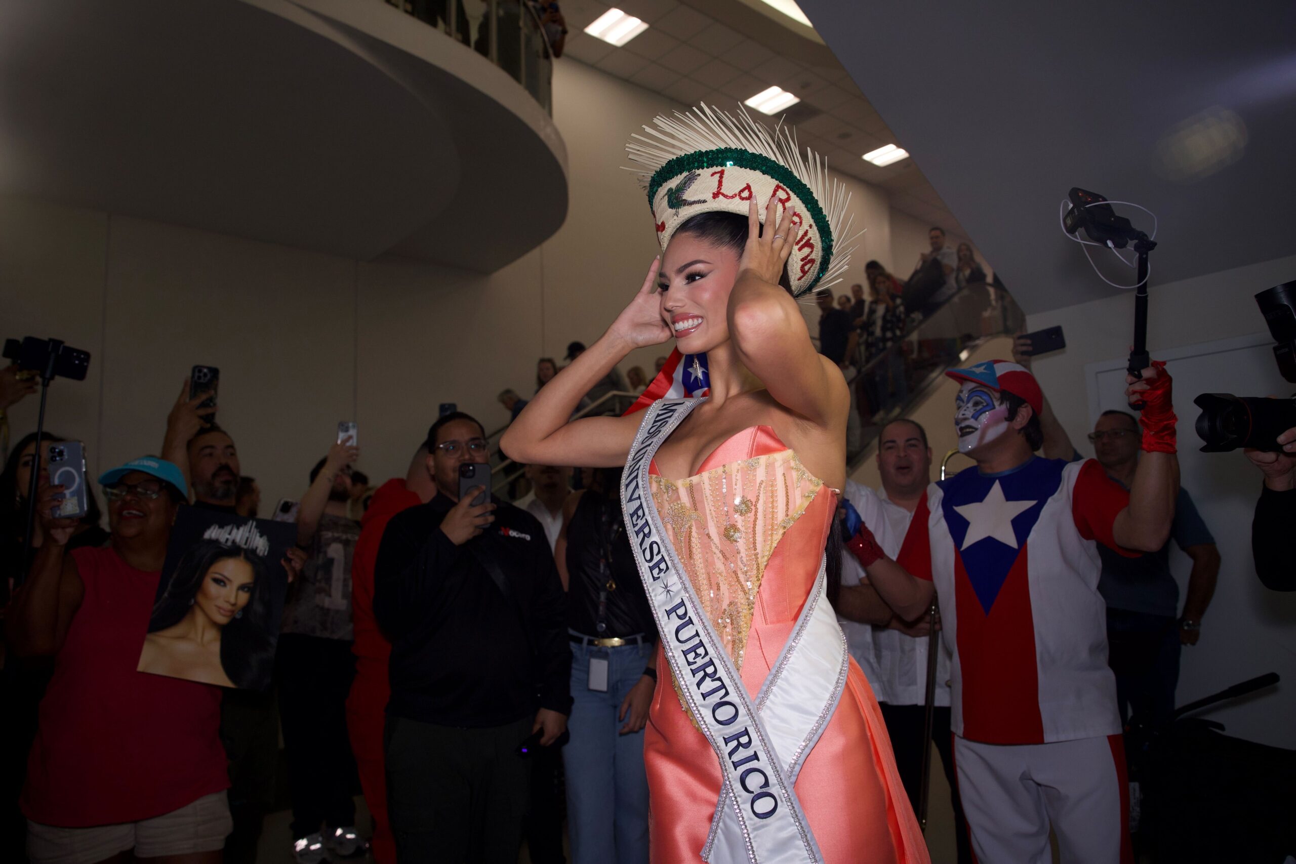 El público se dio cita en la Placita Aerostar del Aeropuerto Internacional Luis Muñoz Marín en Carolina para demostrarle su apoyo y recibirla con entusiasmo, luego de que alcanzara el Top 12 en el certamen internacional.