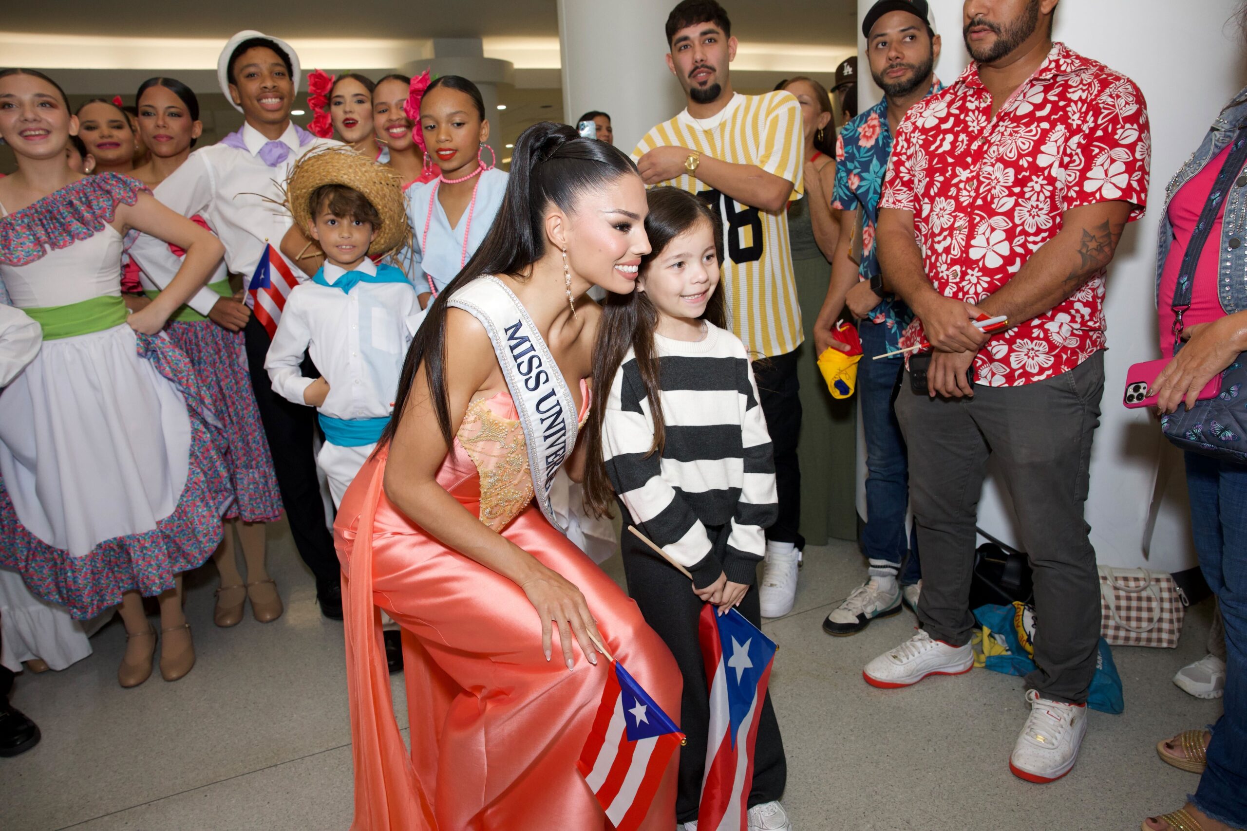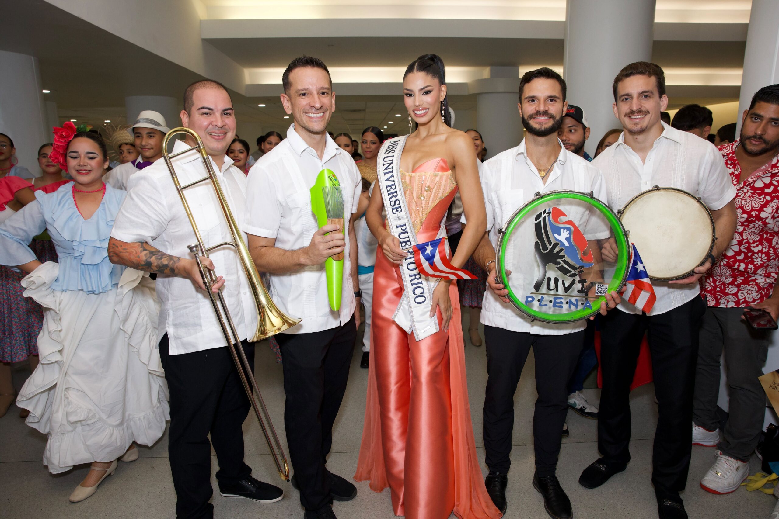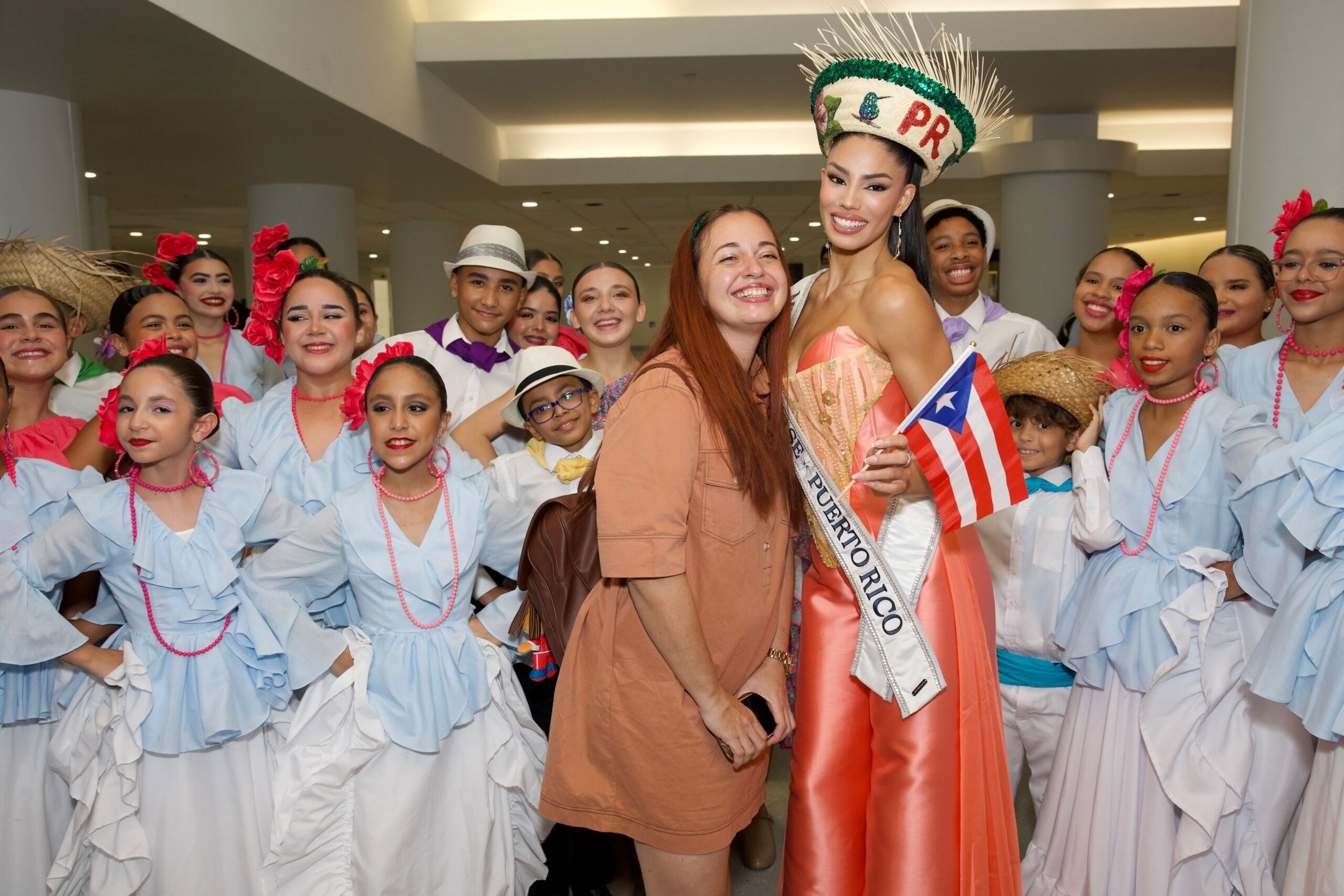 En el aeropuerto, Zashely también fue recibida con música a cargo de Yuvi Plena y la energía de los bailarines de Gíbaro de Puerto Rico, con quienes compartió con el público presente.